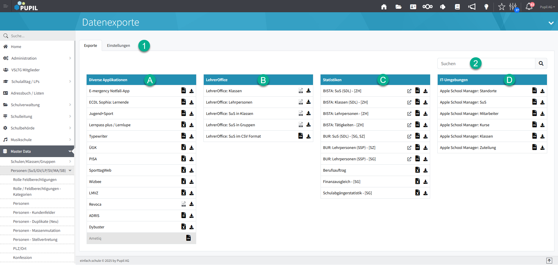 In diesem Artikel wird erklärt, wie aus PUPIL diverse Exporte für Umsysteme erstellt werden können.