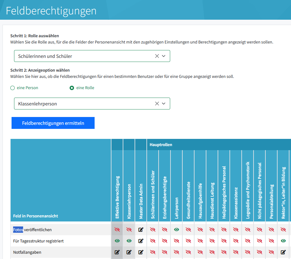 Anwendungsbeispiel: Welche Felder eines "SuS" sieht eine Klassenlehrperson?