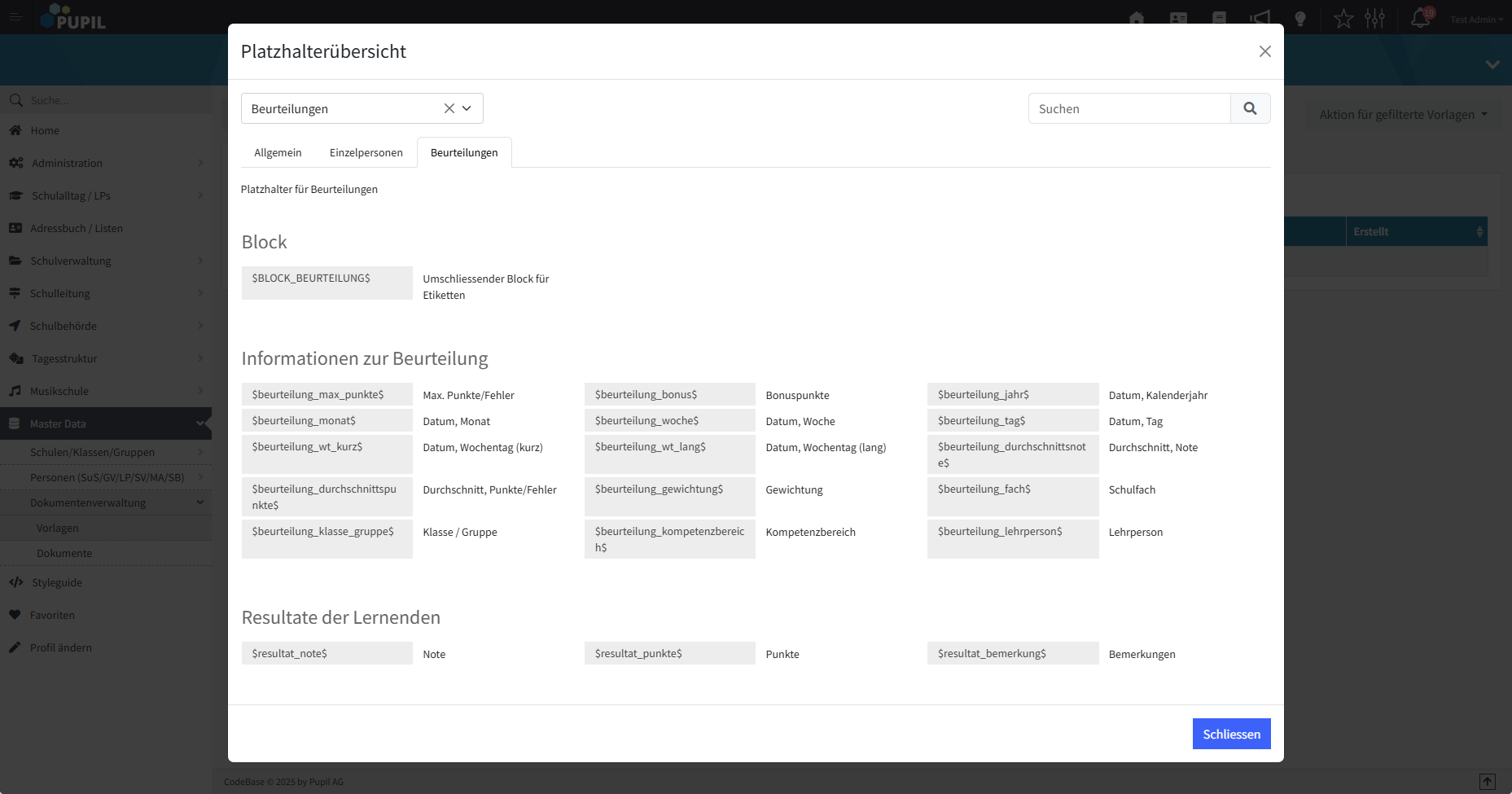 Die Word-Vorlagen werden über definierte Platzhalter aufgebaut und beim Erstellen automatisch mit den entsprechenden Beurteilungsresultaten gefüllt. Dadurch lassen sich Etiketten flexibel und einheitlich gestalten.