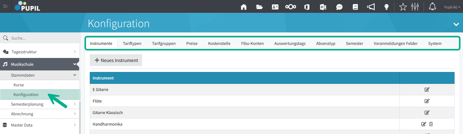 ▶️ Stammdaten - Kurse verwalten und Konfiguration zu Instrumente, Tarife, Semester etc. bearbeiten