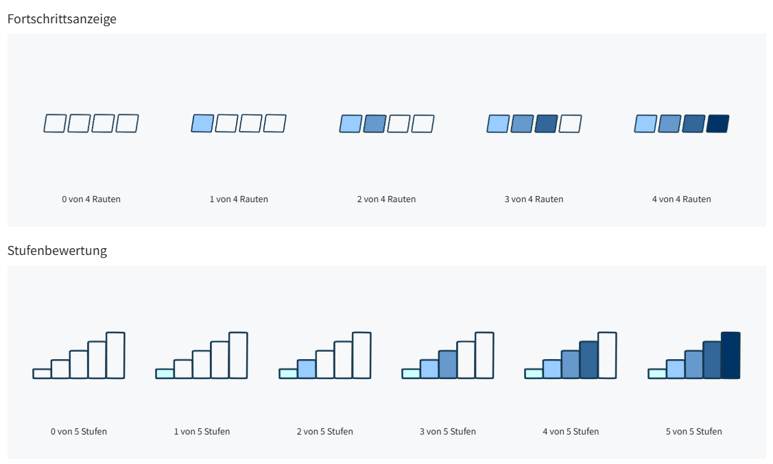 Die Balkenlänge wird je nach Bewertungsstufe angepasst, und die Balken können individuell farblich gestaltet werden. So erhalten die Beurteilungen eine klare und intuitive Darstellung.