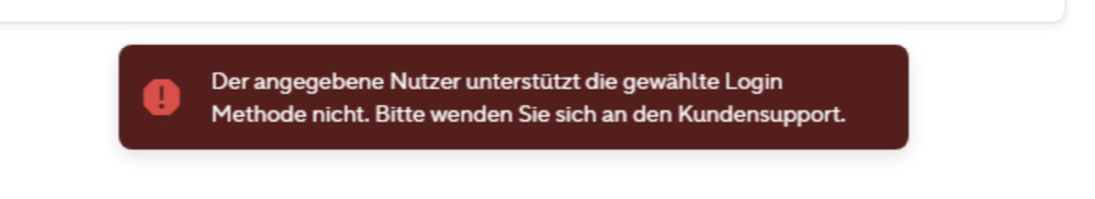 - Warum erscheint die Meldung „Der angegebene Nutzer unterstützt die gewählte Login-Methode nicht"?