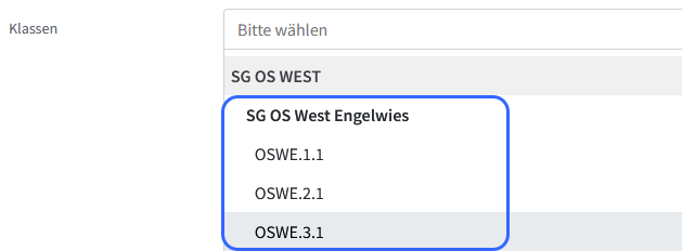 Für die Erstellung wird ein Schuljahr und wieder Klassen u/ Schulen (Standorte) ausgewählt.