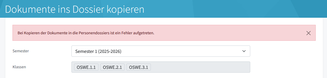 Wird ein Kopiervorgang mehrfach ausgeführt, so werden die bestehenden Zeugnisse im SuS-Dossier überschrieben.